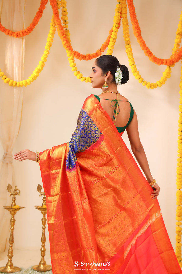 Dark Sapphire Kanjivaram Silk Saree With Floral Weaving