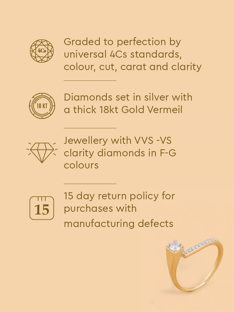 Stand out with this edgy lab diamond solitaire ring. Made in gold vermeil, it combines bold design with stunning brilliance for a striking statement.