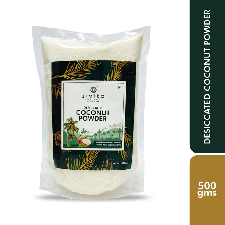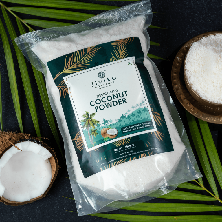 Jivika Organics brings you Desiccated Coconut Powder, a pinnacle of quality, sourced from Coastal Andhra, giving you the goodness of coconut all round the year. Fresh coconuts are harvested just the right time and are then dried naturally, giving a distinct coconut-y flavour and mouthfeel!