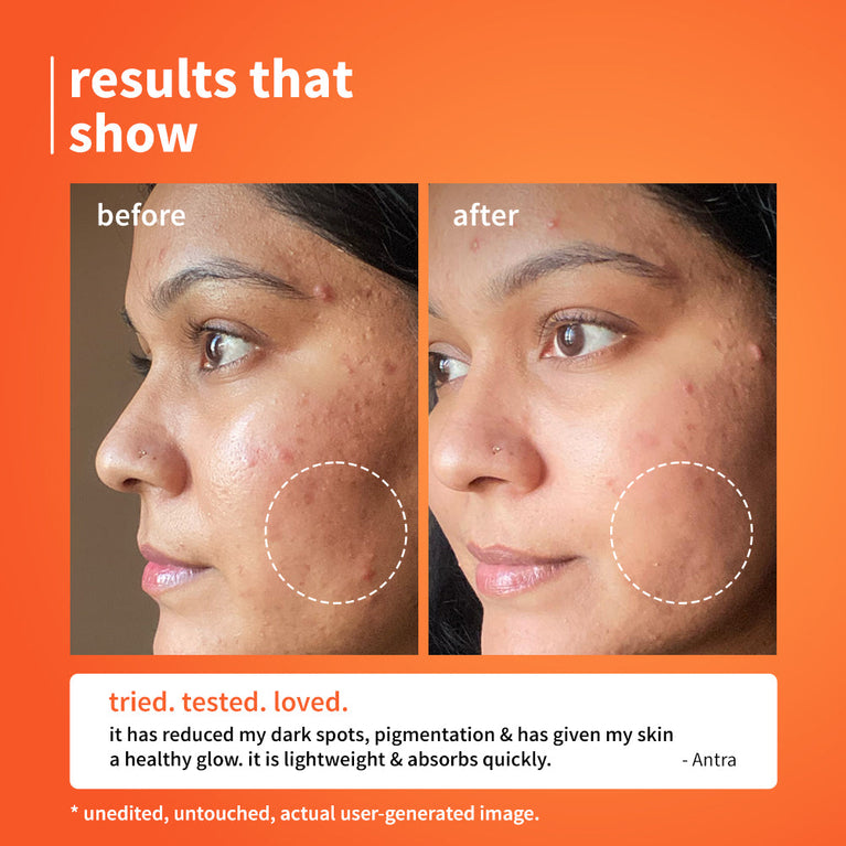 *boosts glow *reduces dark spots *fights hyperpigmentation & sun damage *protects skin from free radical damage and oxidative stress