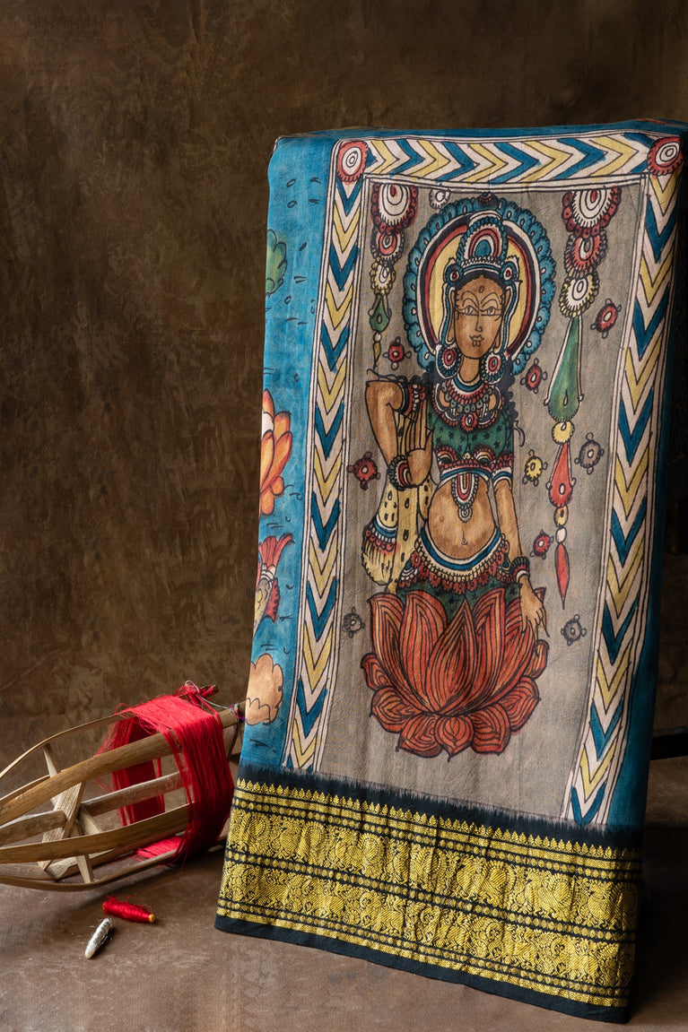 Mandir Peacock Blue & Red Paithani Buttis Saree