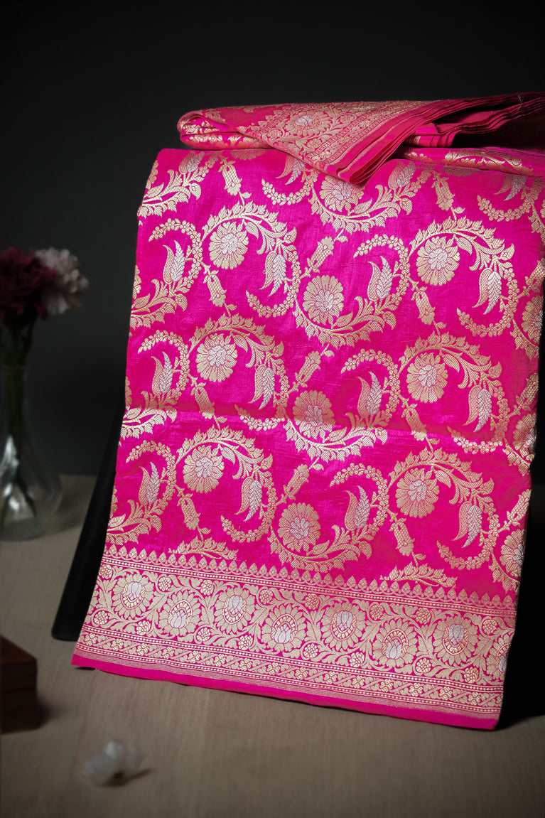 Mandir Pink & Gold Banarasi Floral Jaal Saree