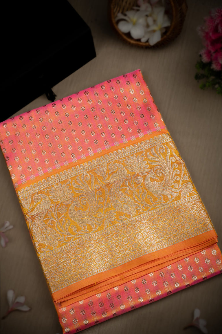 Mandir Pink & Coral Venkatagiri Buttis Saree