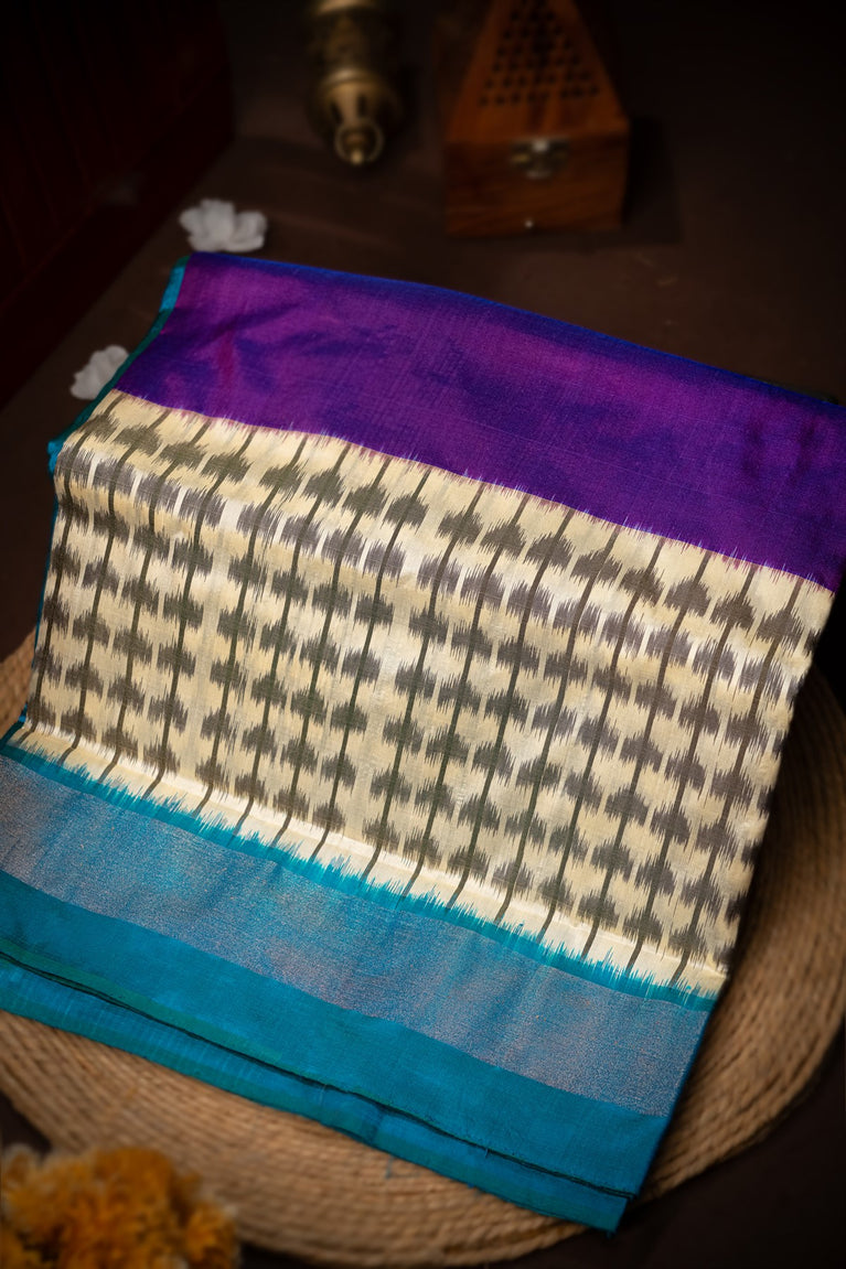 Mandir Purple & Teal Blue Kanchi Ikat Ikat Saree