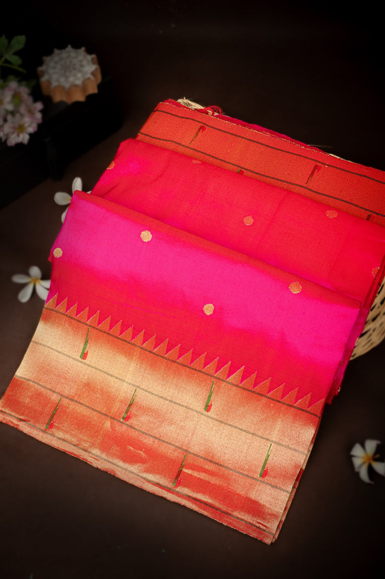 Mandir Pink and Orange & Pink Paithani Checks Saree