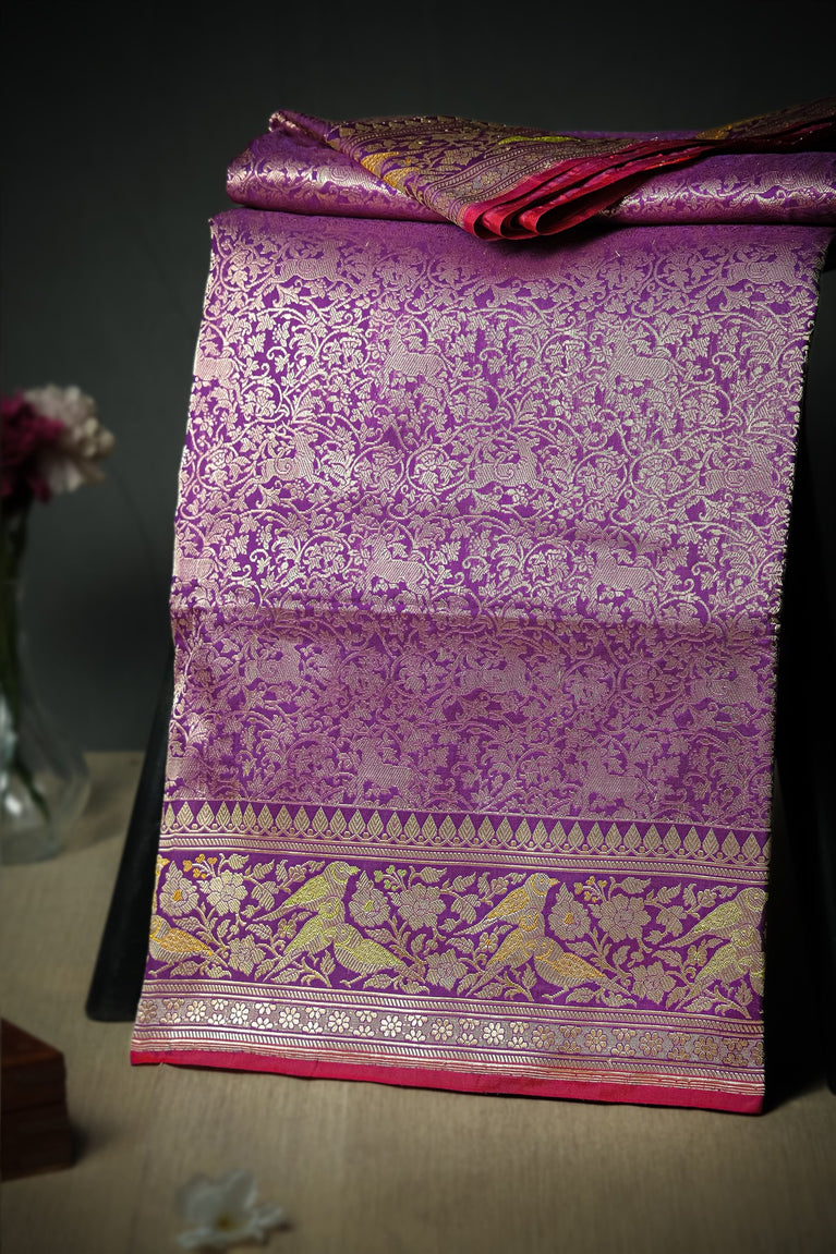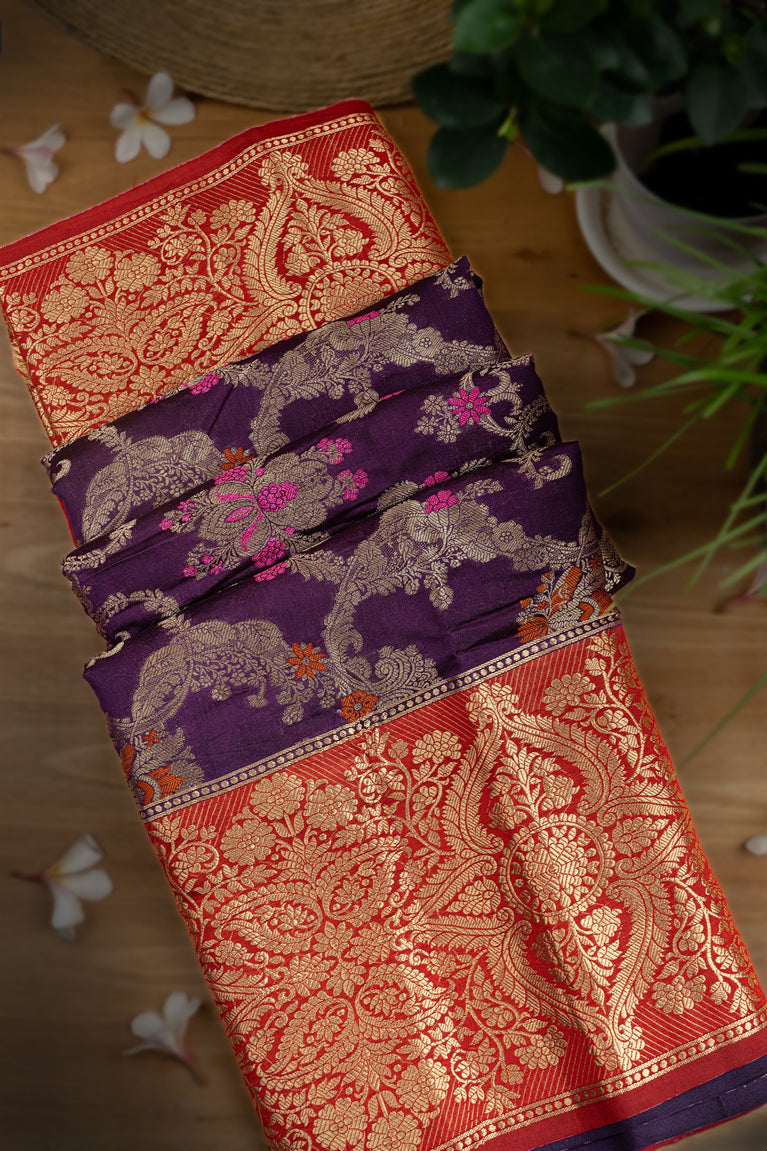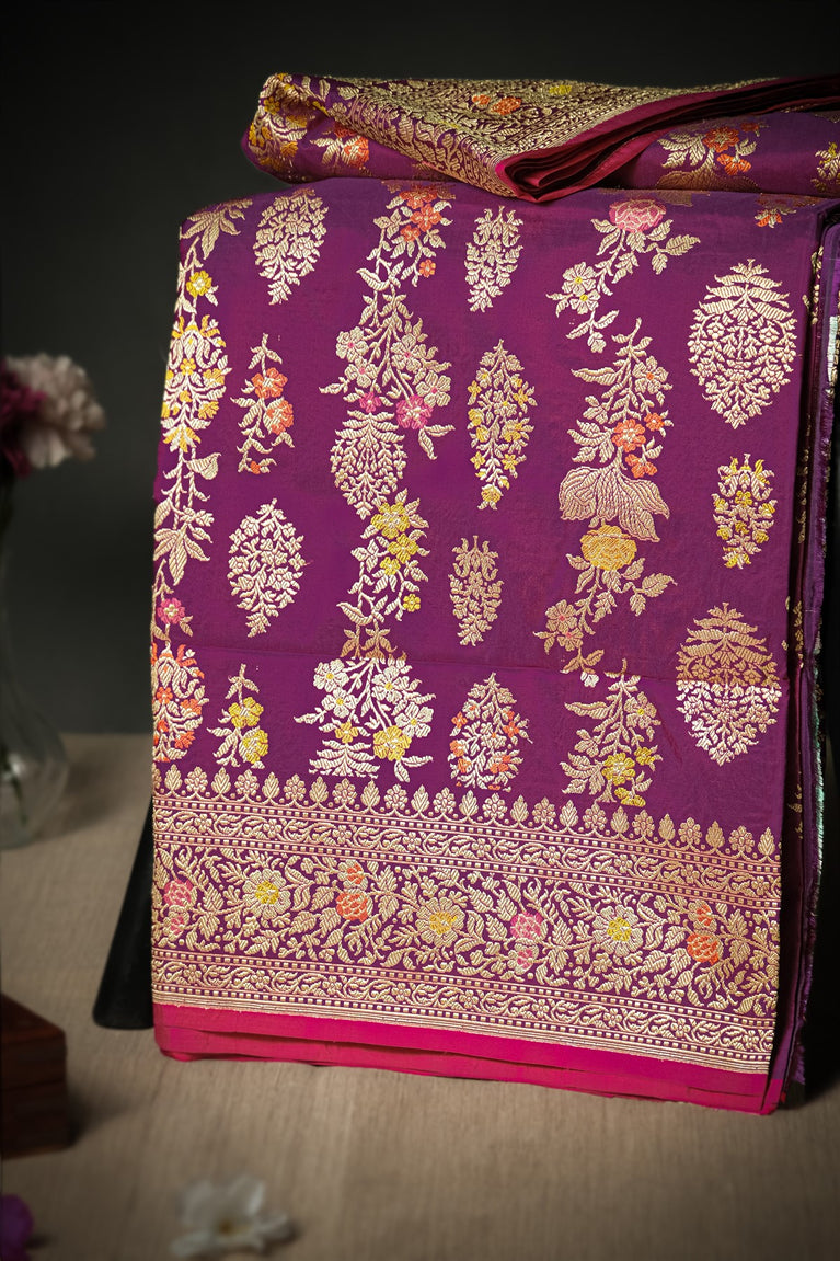 Mandir Purple & Multi-Colour Banarasi Jaal Saree