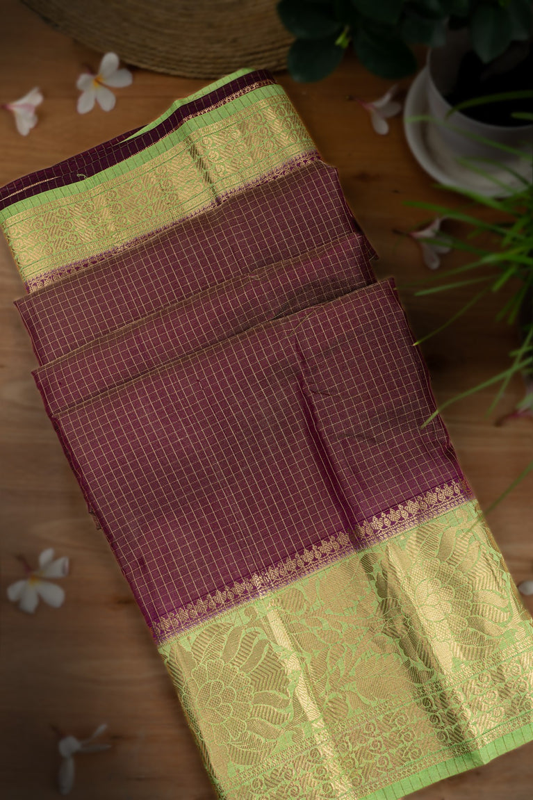 Mandir Pista Green & Magenta Gadwal Checks And Buttis Saree
