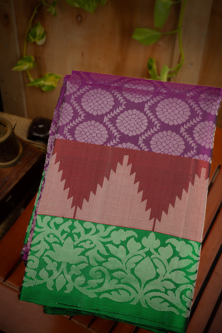 Mandir Purple & Bottle Green Coimbatore Motifs Saree
