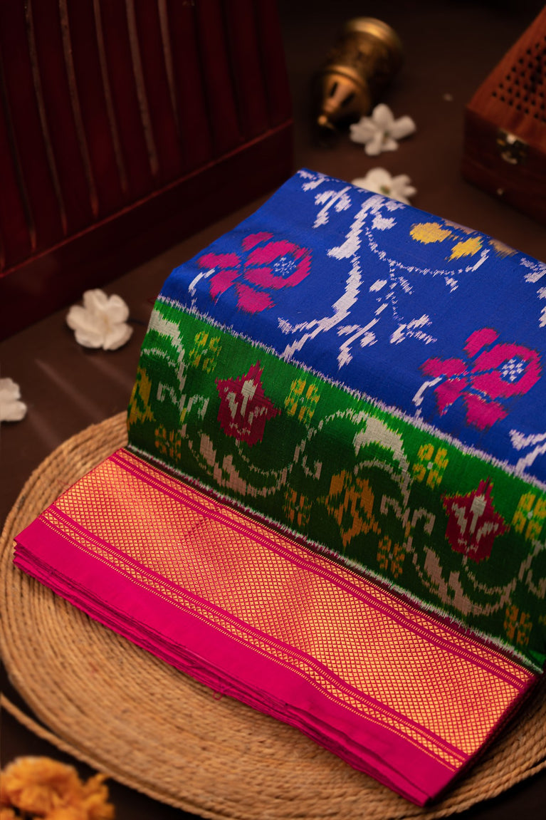 Mandir Royal Blue & Magenta Patan Patola Ikat Saree
