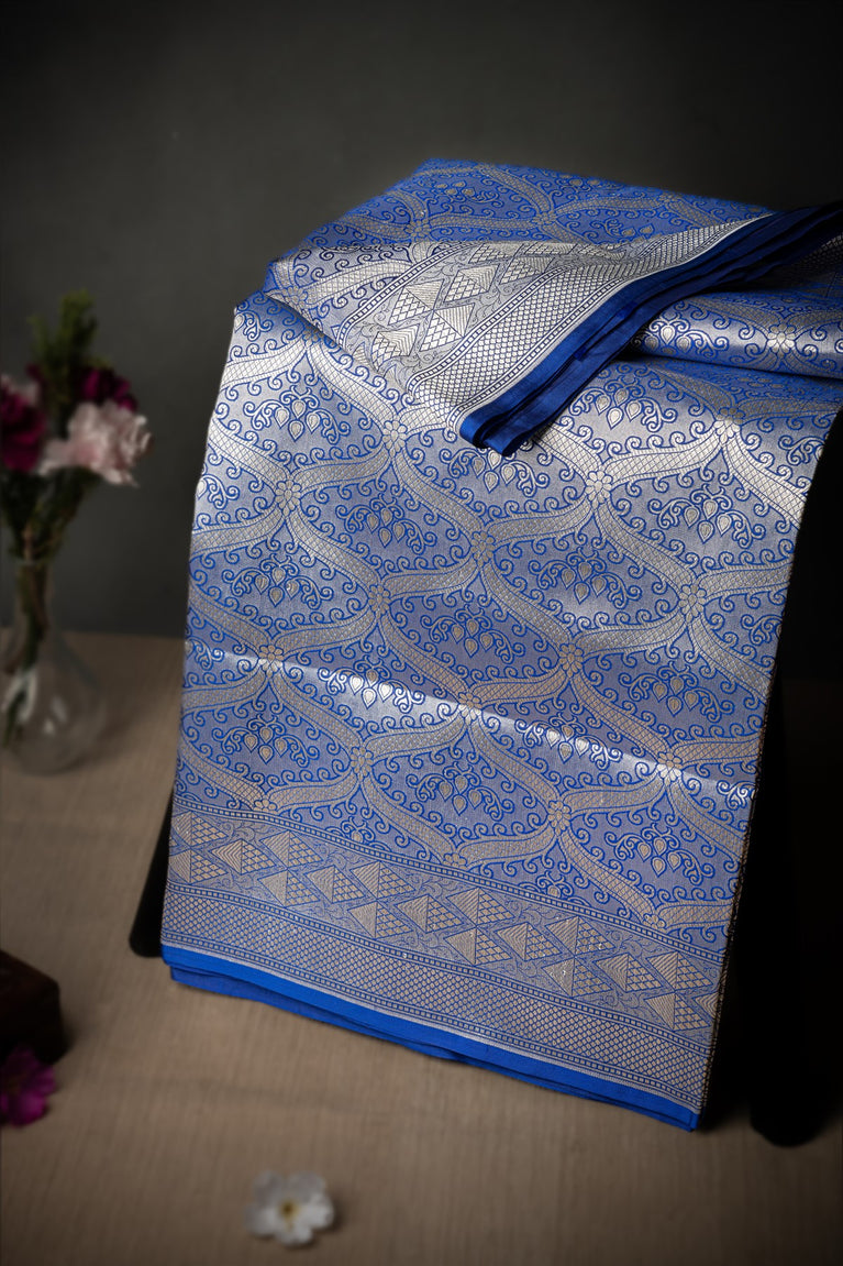 Mandir Royal Blue & Silver Banarasi Jaal Saree