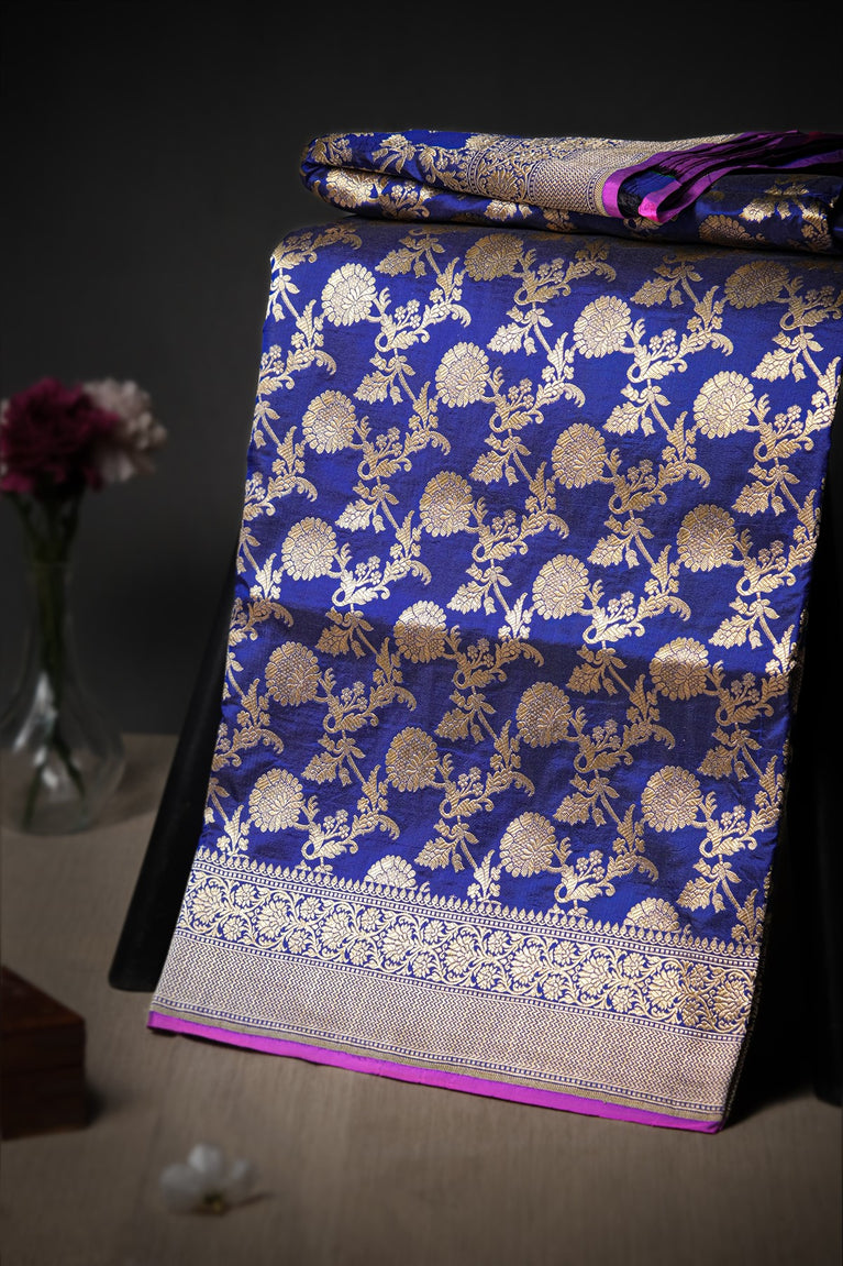 Mandir Royal Blue & Gold Banarasi Jaal Saree