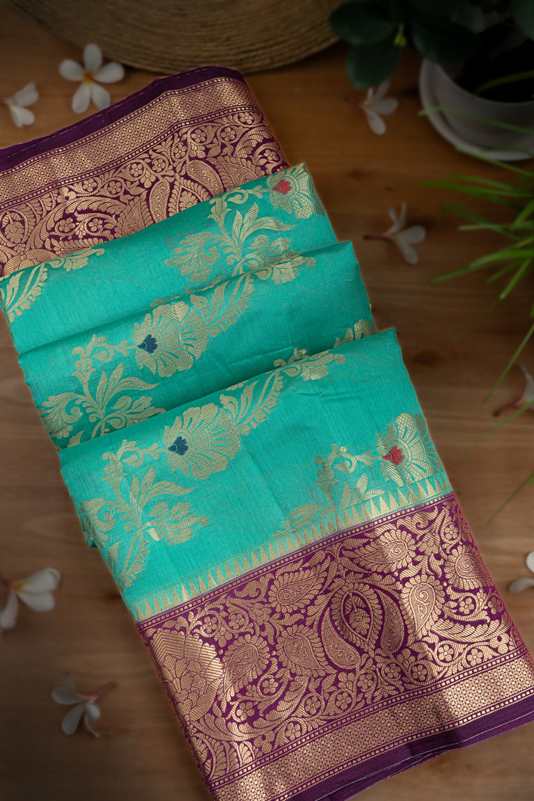 Mandir Royal Blue & Peacock Green Coimbatore Buttis Saree