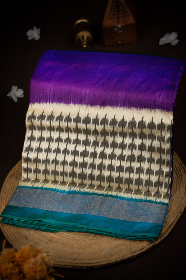 Mandir Royal Blue & Cream Ikat Plain Saree