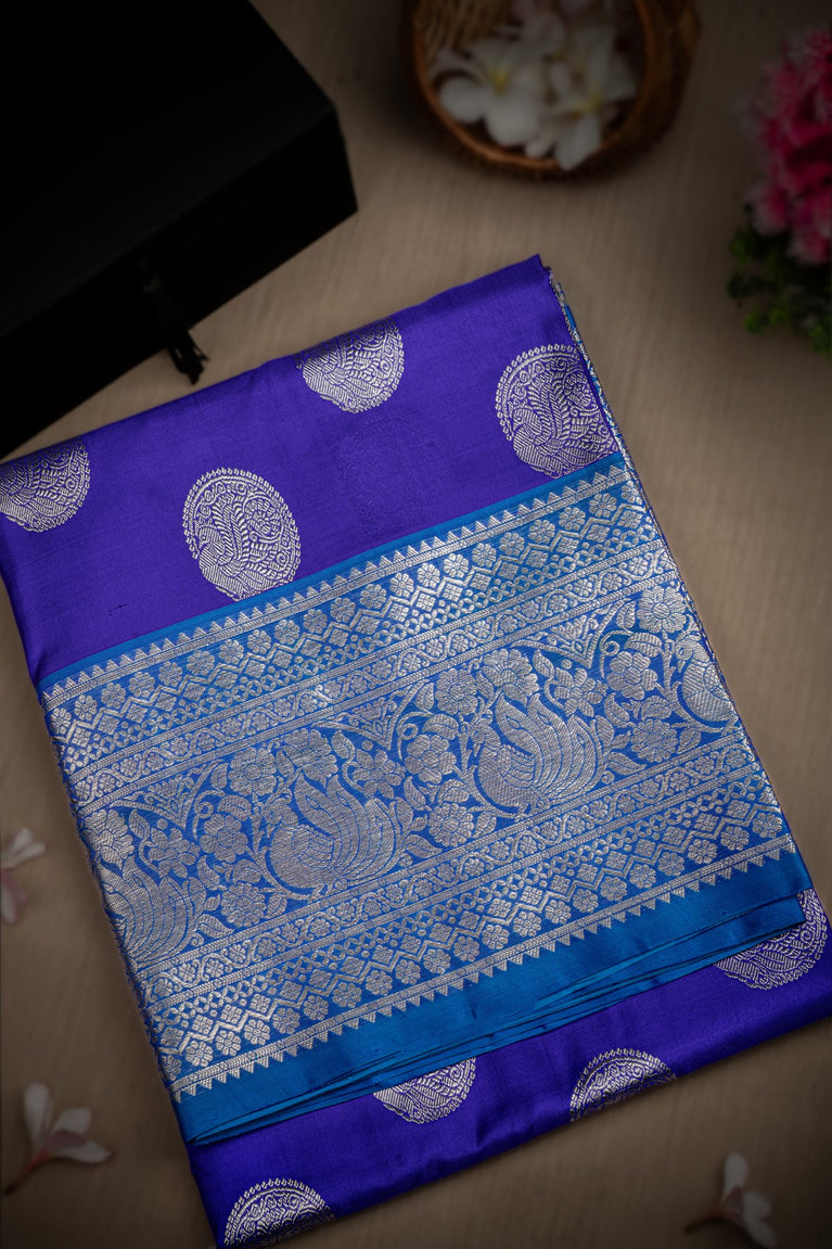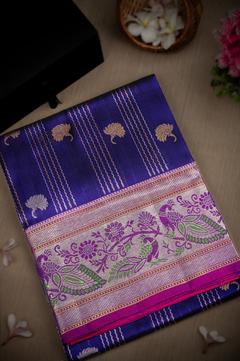 Mandir Royal Blue & Purple Venkatagiri Motifs Saree