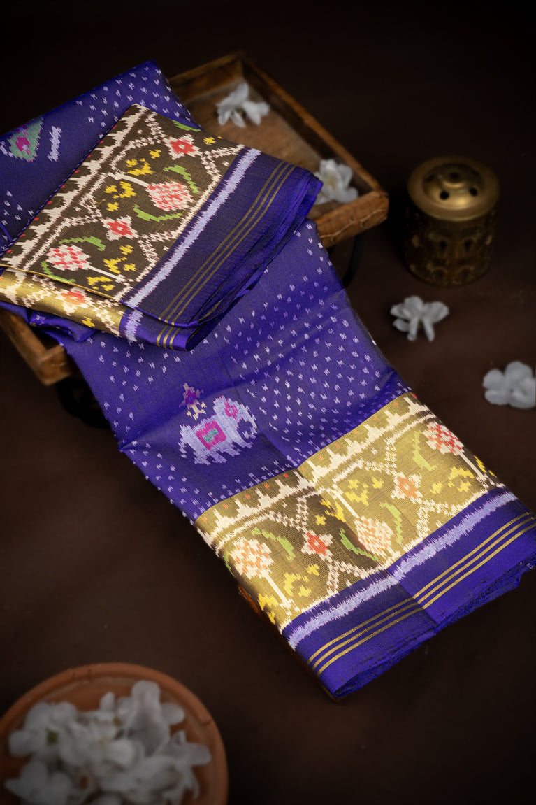 Mandir Royal Blue & Olive Green Patan Patola Ikat Saree