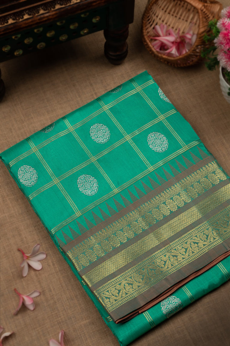 Mandir Sea Green & Magenta Kanchipuram Checks And Buttis Saree