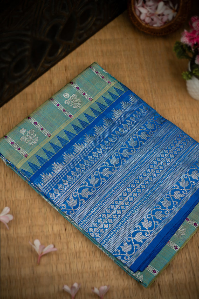 Mandir Sea Green & Light Grey Venkatagiri Motifs Saree