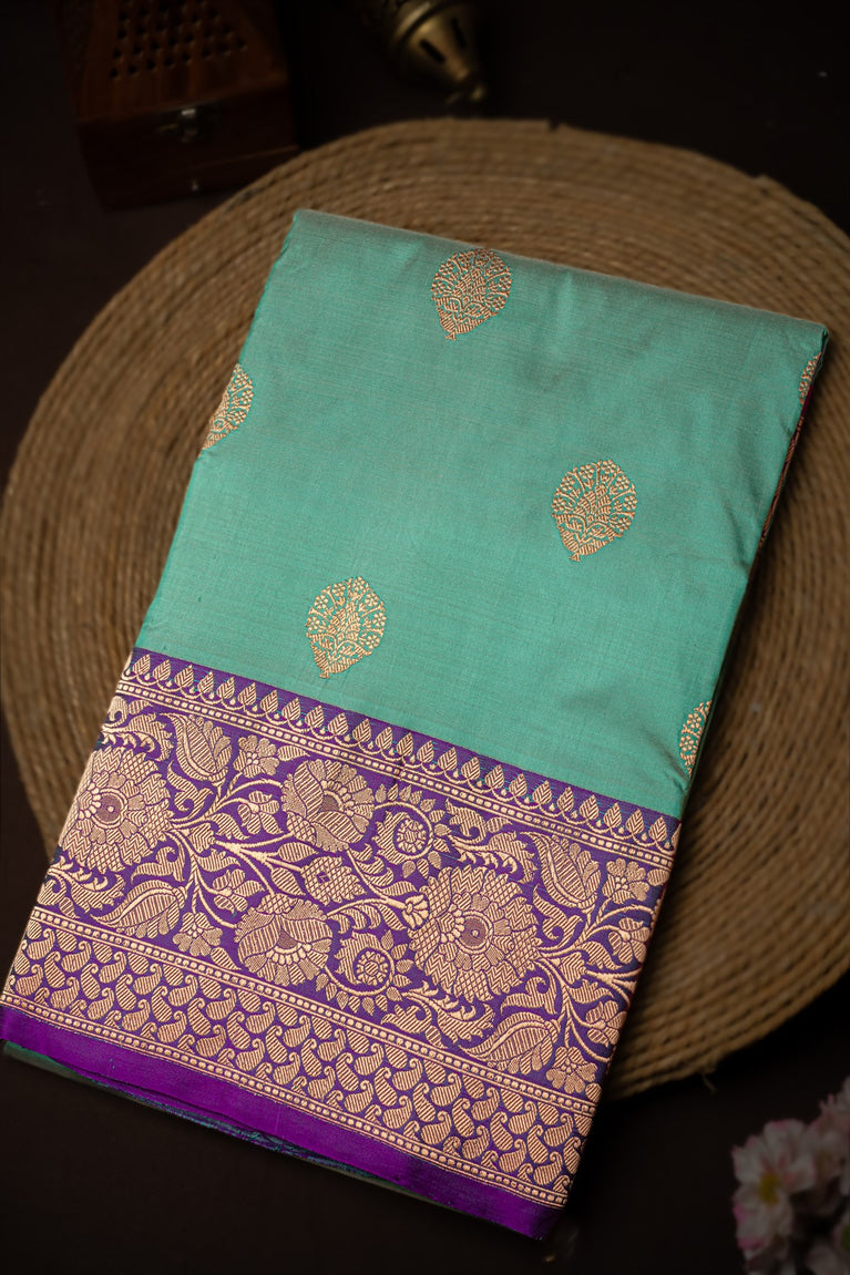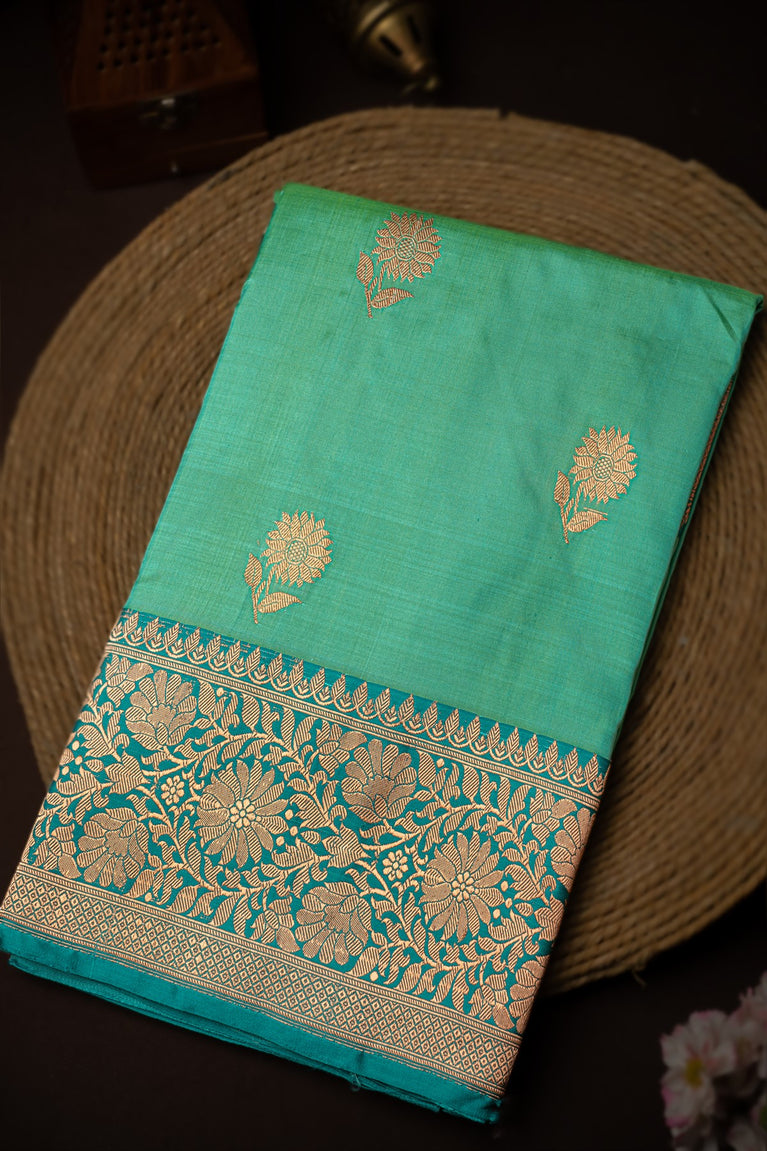 Mandir Sea Green & Teal Banarasi Buttis Saree