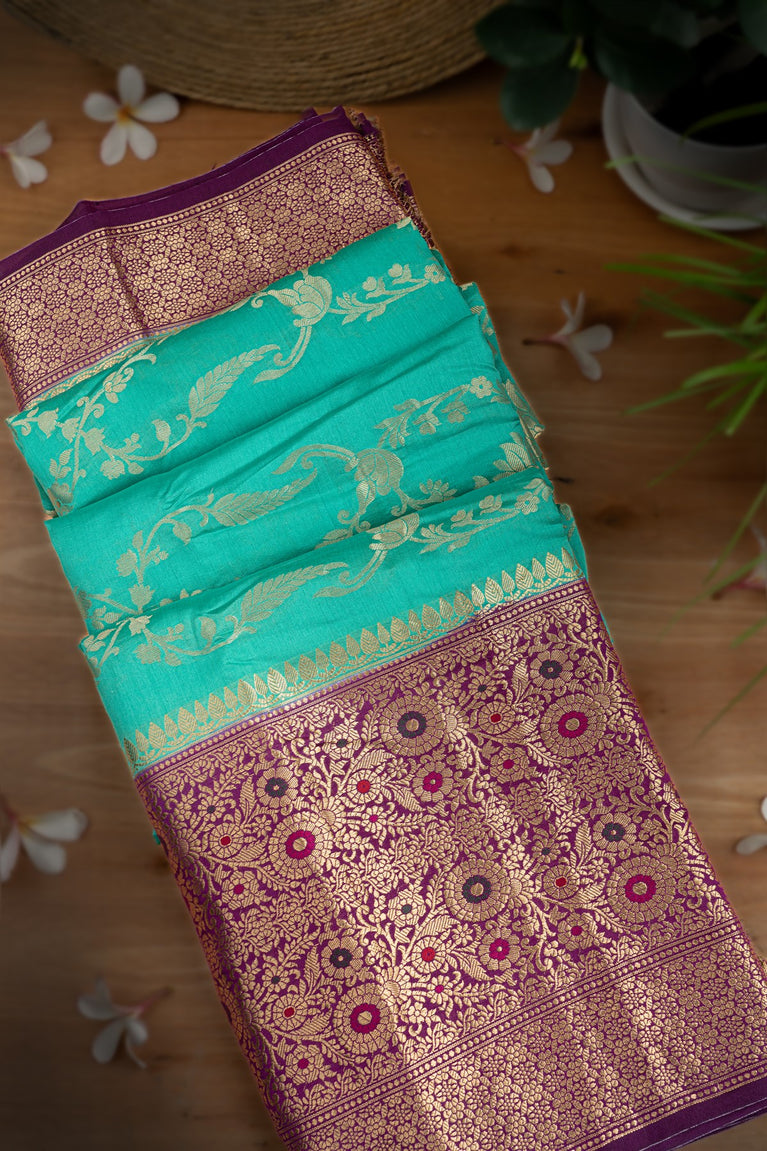 Mandir Sea Green & Gold Banarasi Motifs Saree