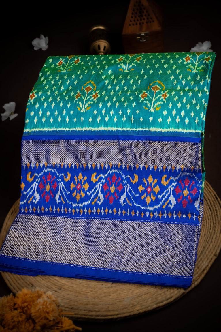 Mandir Sea Green & Royal Blue Ikat Ikat Saree