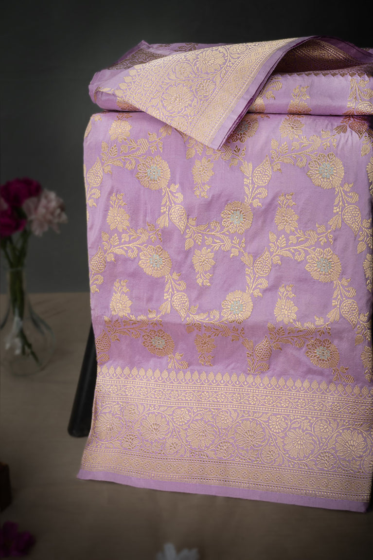 Mandir Lavender & Gold Banarasi Jaal Saree
