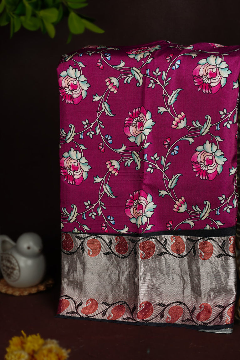 Mandir Magenta & Copper Banarasi Floral Jaal Saree