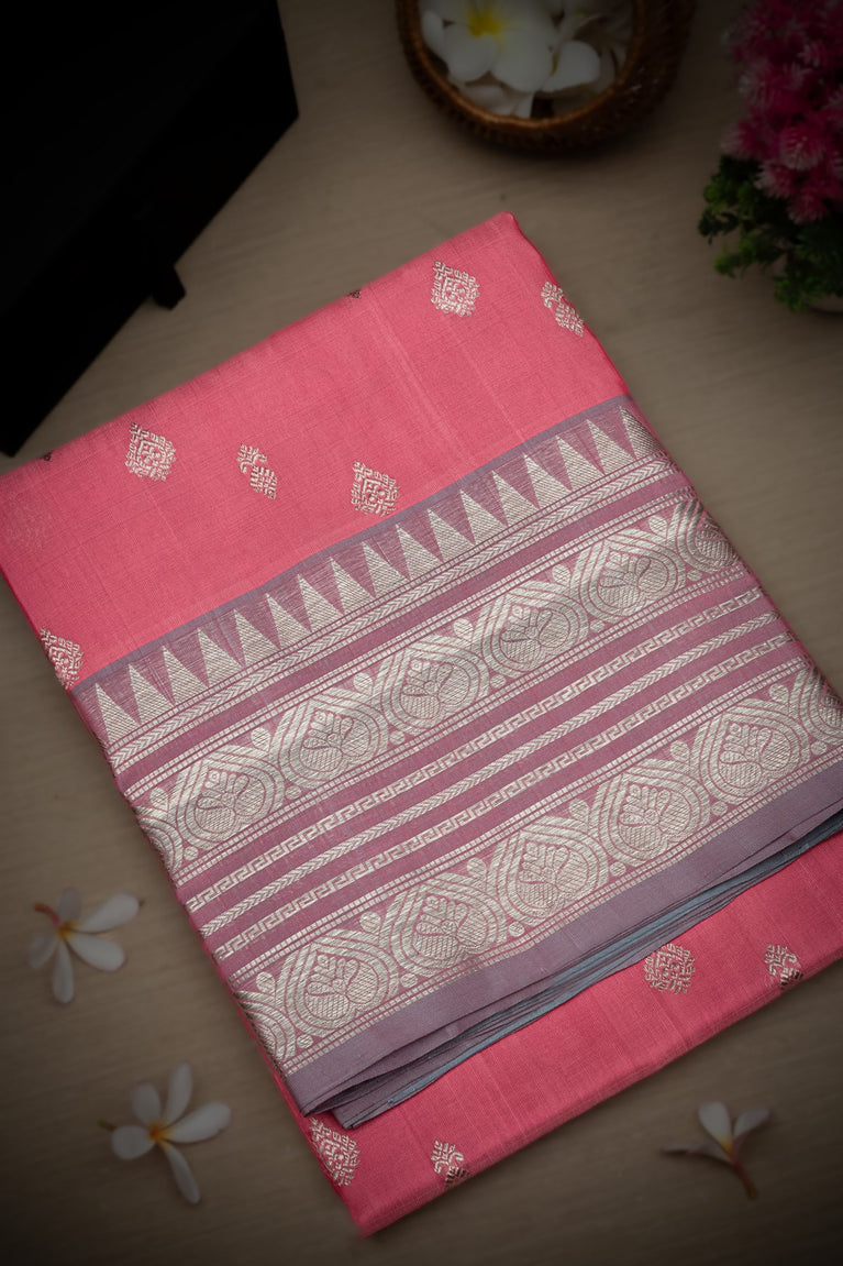 Mandir Light Pink & Silver Venkatagiri Buttis Saree
