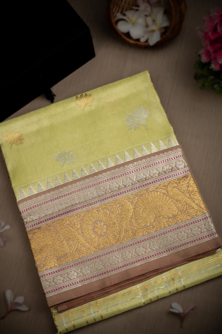 Mandir Lime Green & Gold Banarasi Jaal Saree