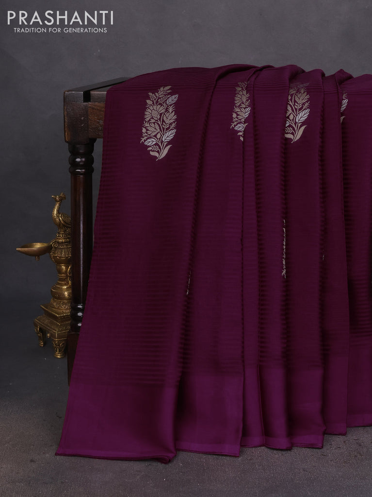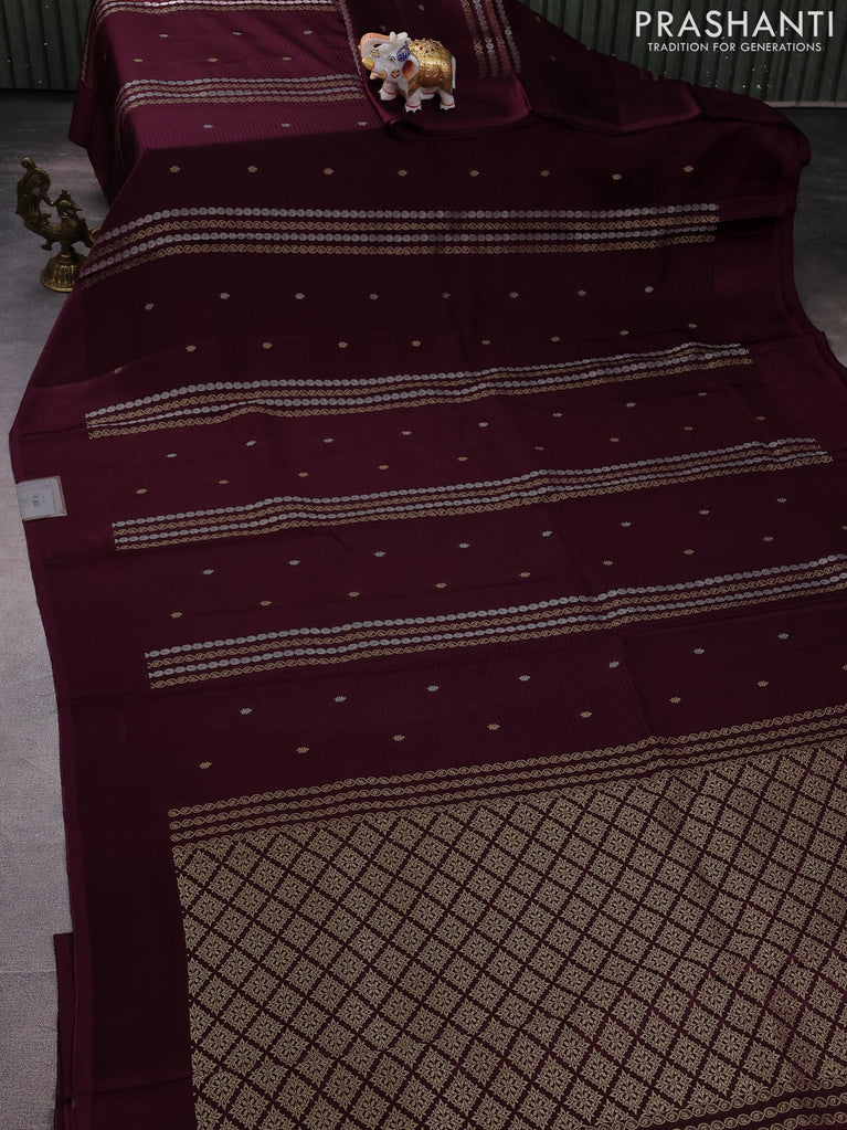 Banarasi mushru silk saree wine shade with allover zari weaves and zari woven border