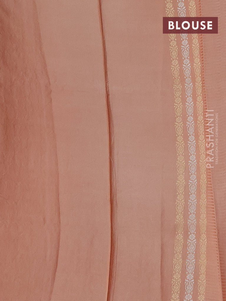 Banarasi mushru silk saree pale orange with allover stripes pattern & zari buttas and satin border