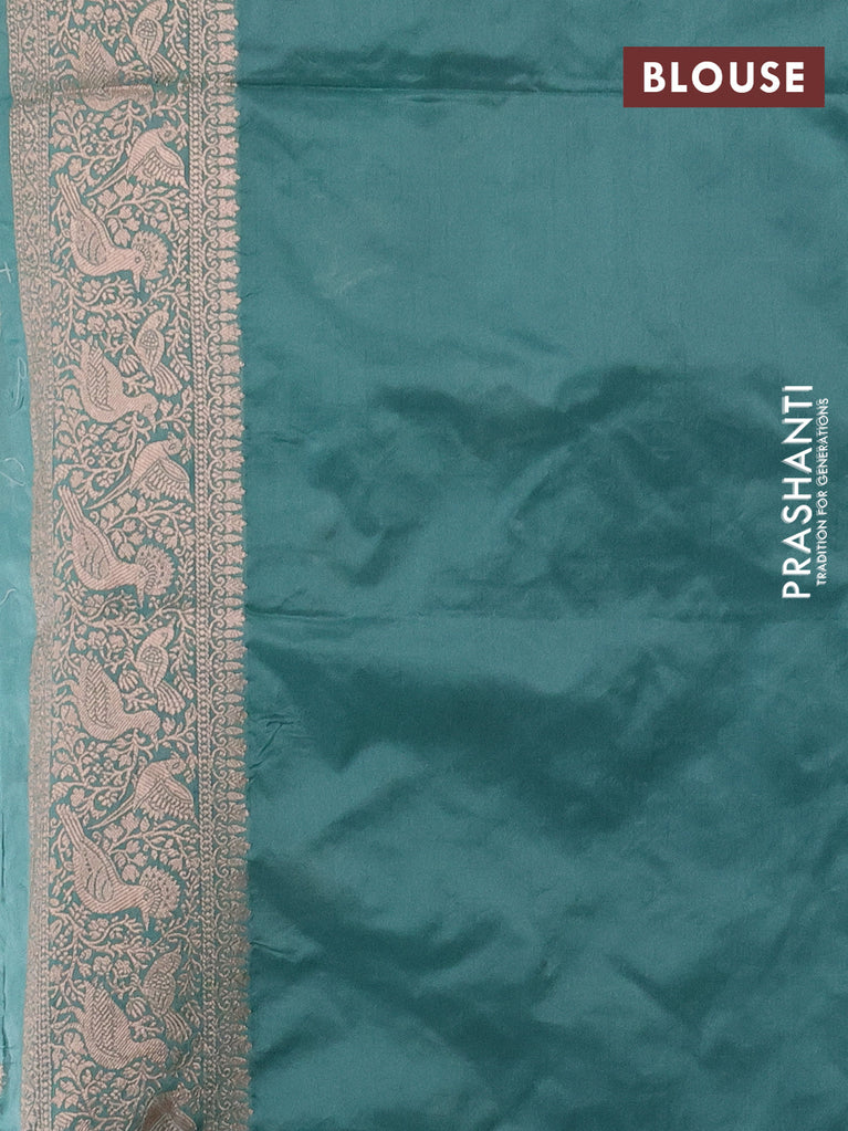 Banarasi semi katan saree teal blue with lion zari woven buttas and rich zari woven butta border