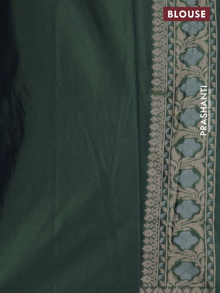 Banarasi semi katan silk saree dual shade of teal bluish green with allover silver & gold zari weaves and deer design zari woven border