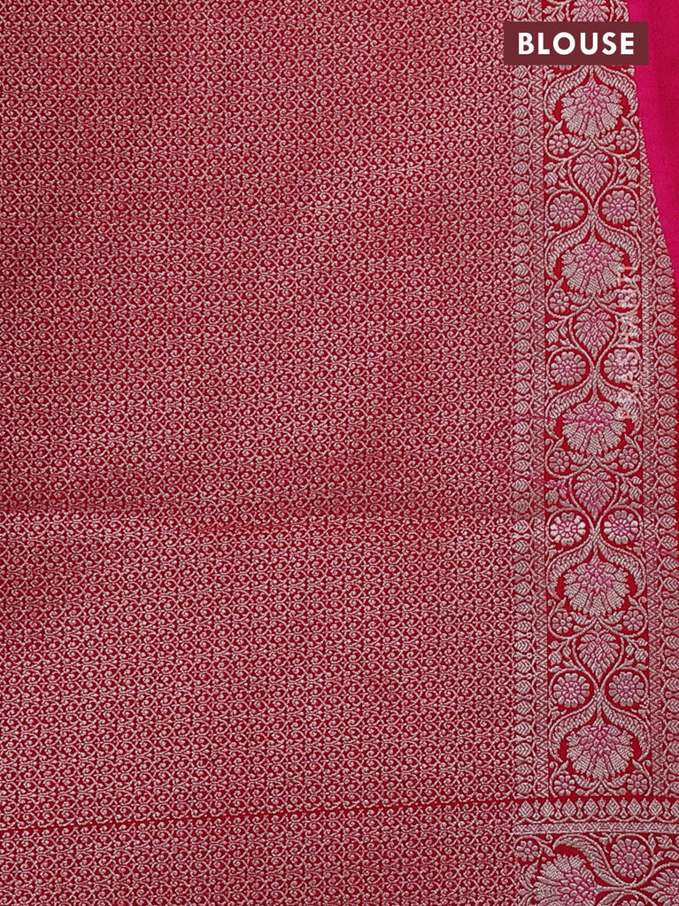 Banarasi semi mushru silk saree reddish pink with allover zari woven buttas and zari woven border