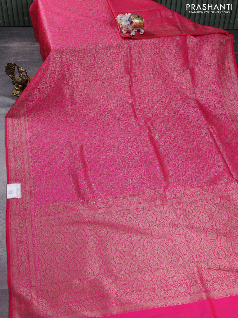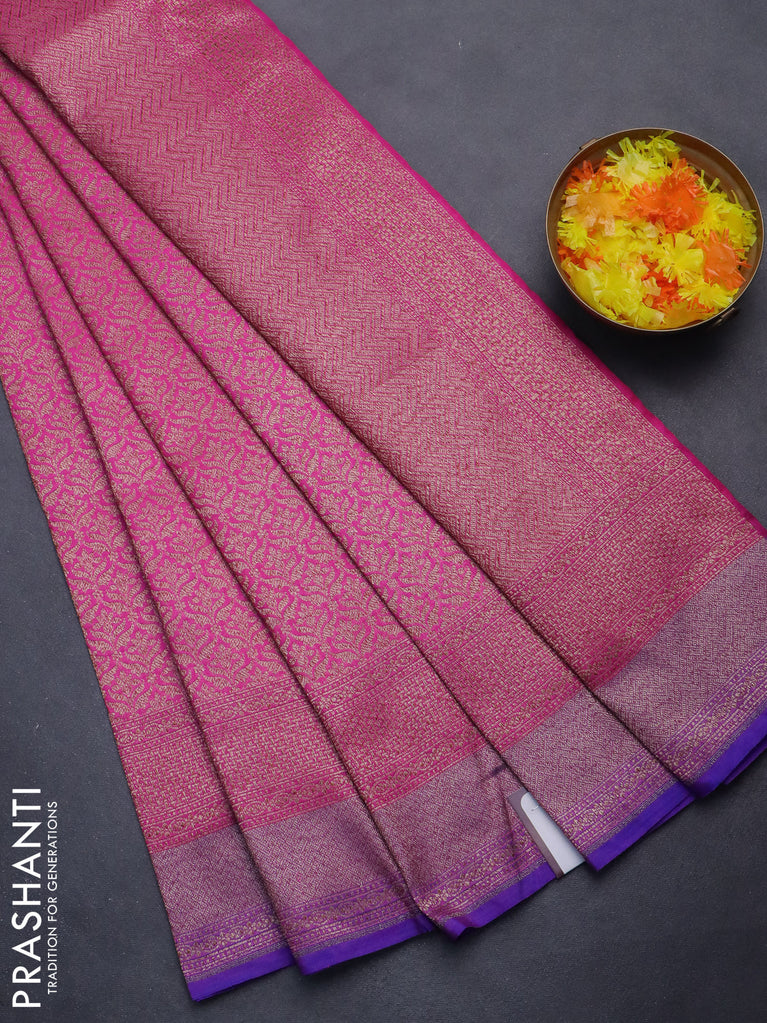 Banarasi semi silk saree pink and violet with allover thread & zari weaves and woven border