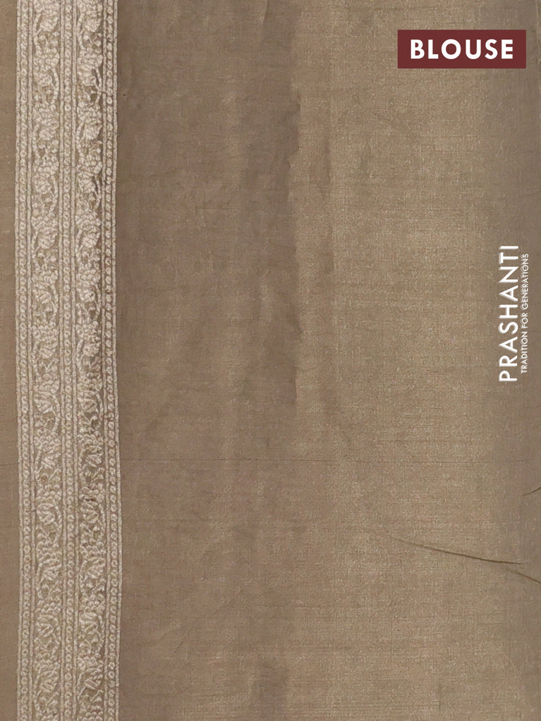 Banarasi tissue silk saree dark sandal with allover silver & gold zari weaves and zari woven border