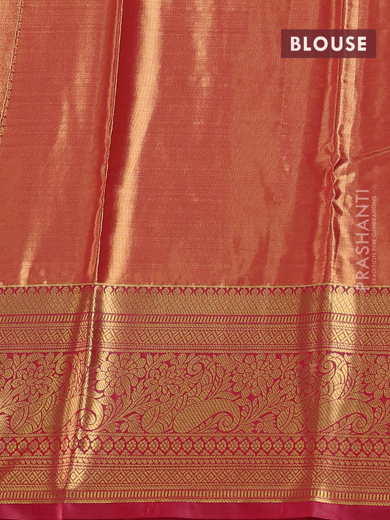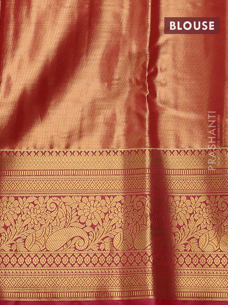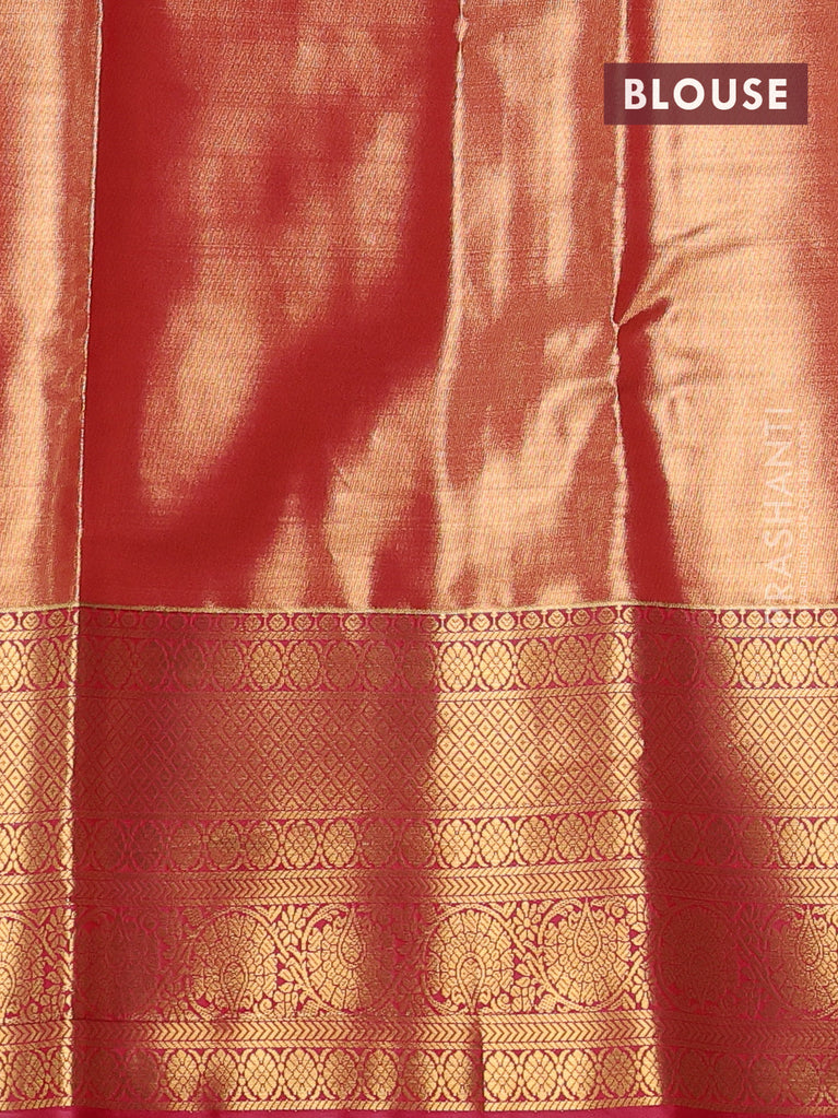 Bangalori tissue silk saree dual shade of mehendi green and reddish pink with allover zari woven brocade weaves and long zari woven border