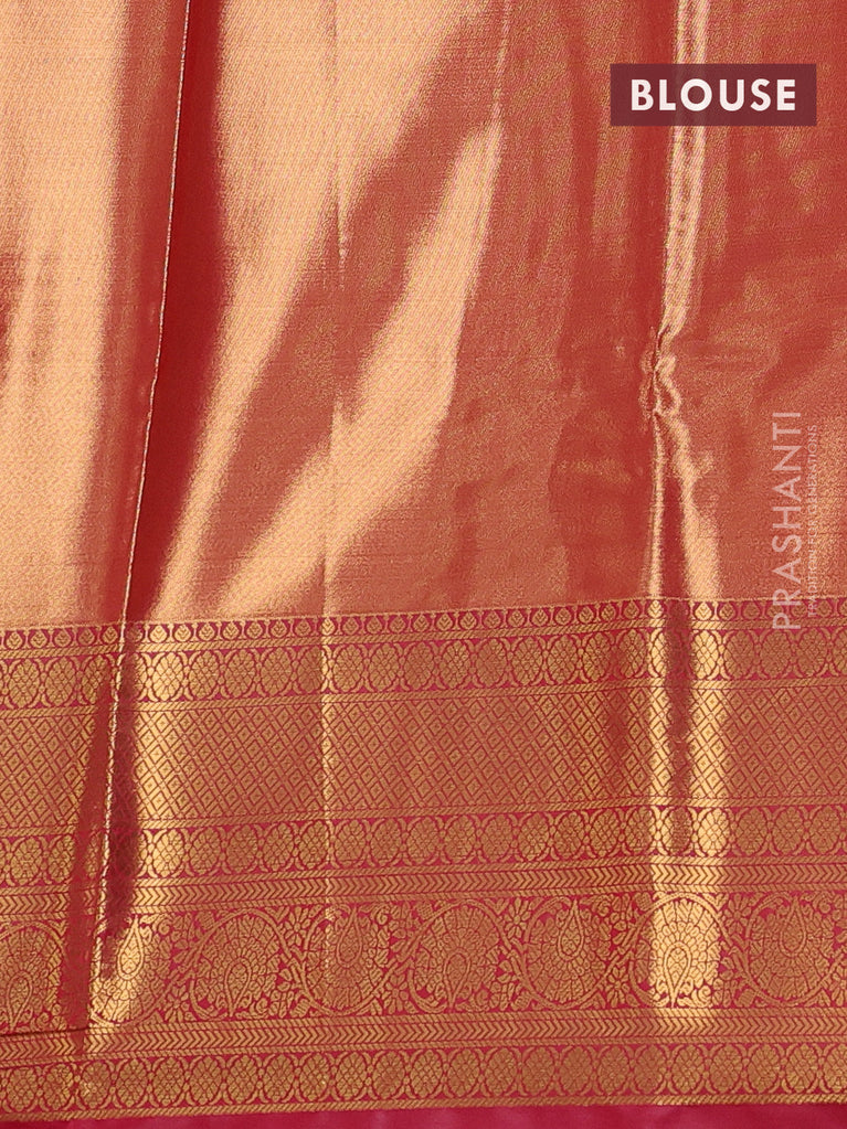 Bangalori tissue silk saree blue and reddish pink with allover zari woven brocade weaves and long zari woven border