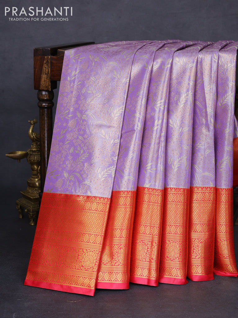 Bangalori tissue silk saree lavender and pink with allover zari woven brocade weaves and long zari woven border
