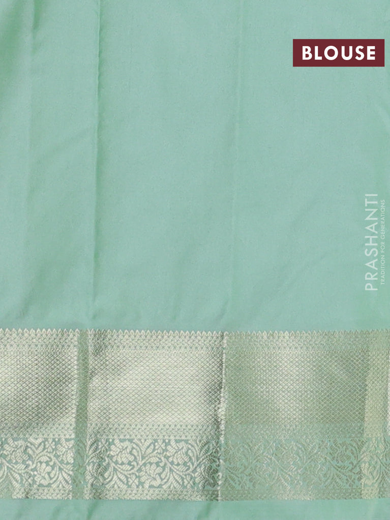 Bangalori silk saree teal green and purple with zari woven buttas and long zari woven border