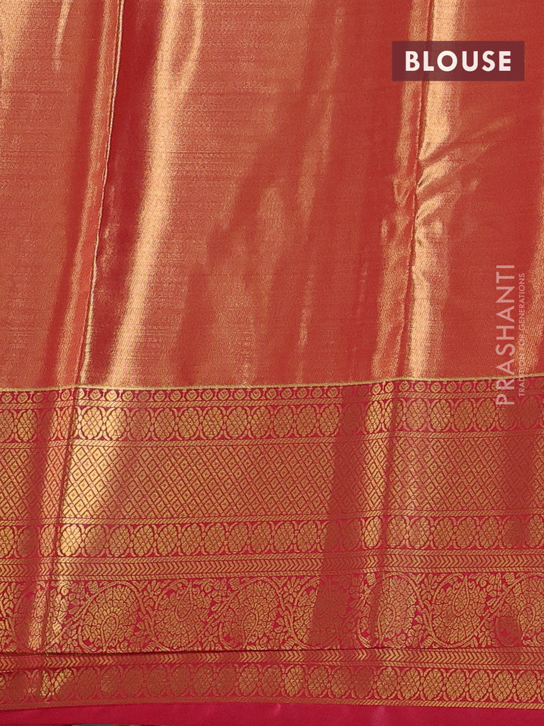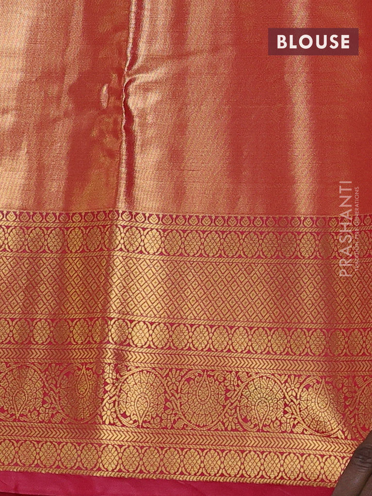 Bangalori tissue silk saree peach shade and reddish pink with allover zari woven brocade weaves and long zari woven border