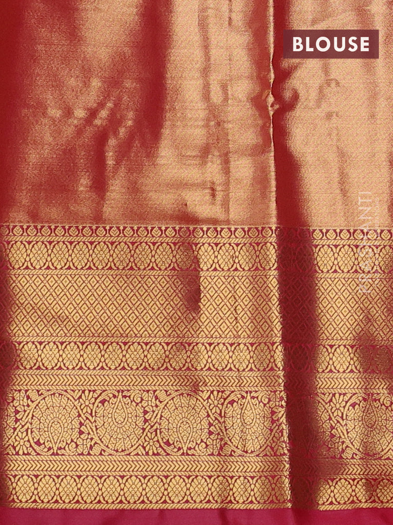 Bangalori tissue silk saree red and violet with allover zari woven brocade weaves and long zari woven border