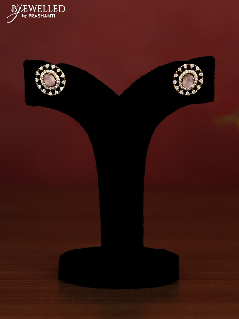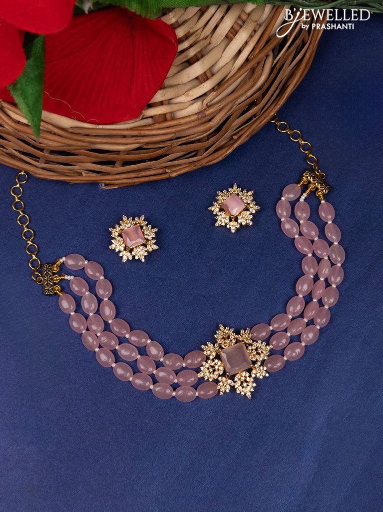 Beaded baby pink choker with kundan & cz stones and pearl hangings in victorian finish