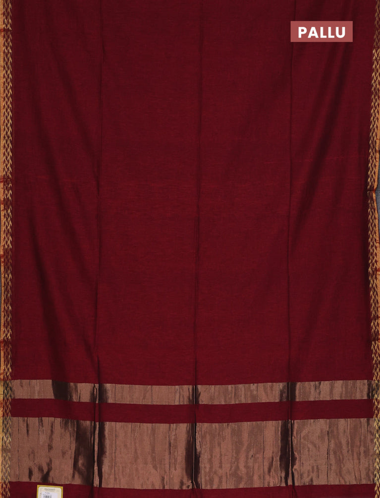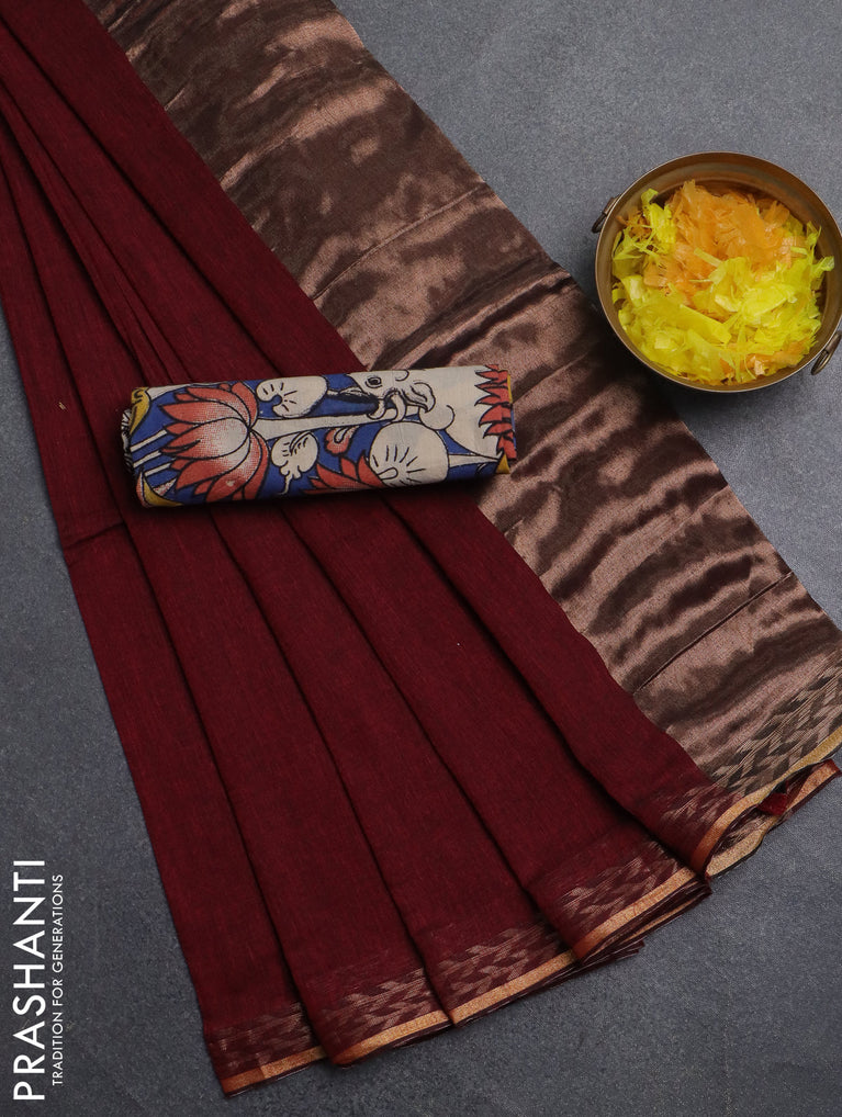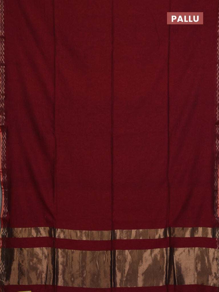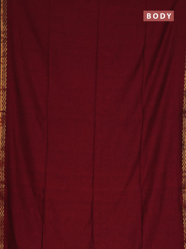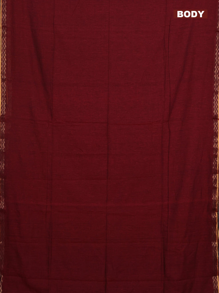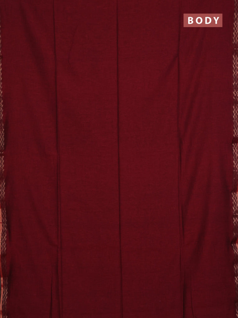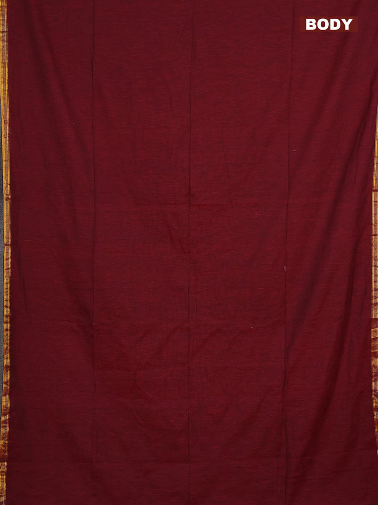 Bengal soft cotton saree maroon with plain body and zari woven border