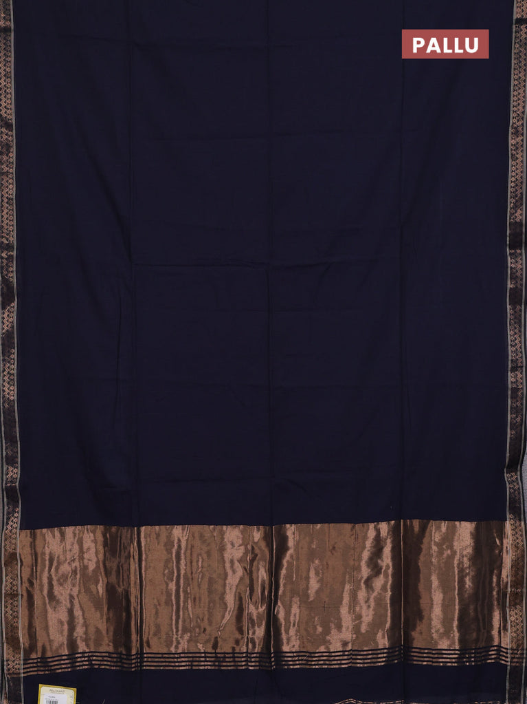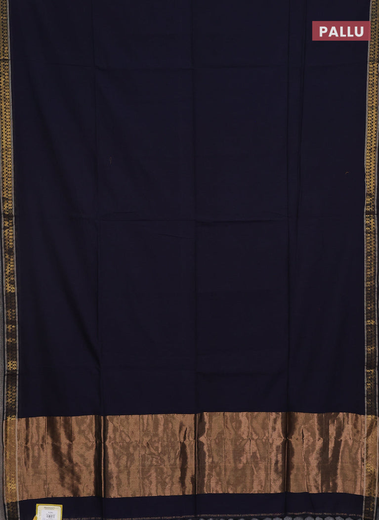 Bengal soft cotton saree navy blue and grey with plain body and zari woven border