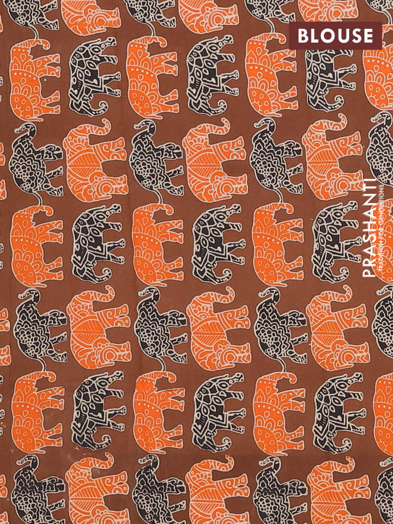Bengal soft cotton saree navy blue and brown with plain body and zari woven border