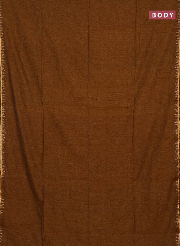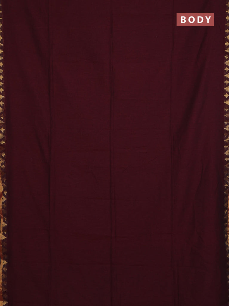 Bengal soft cotton saree maroon and mustard yellow with plain body and zari woven border