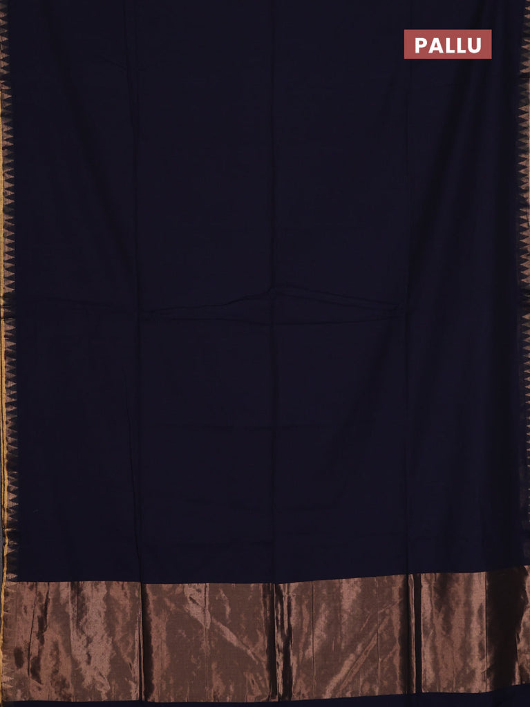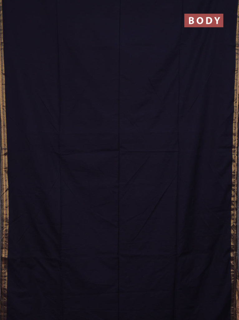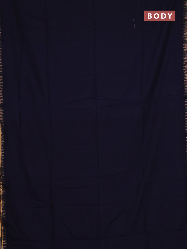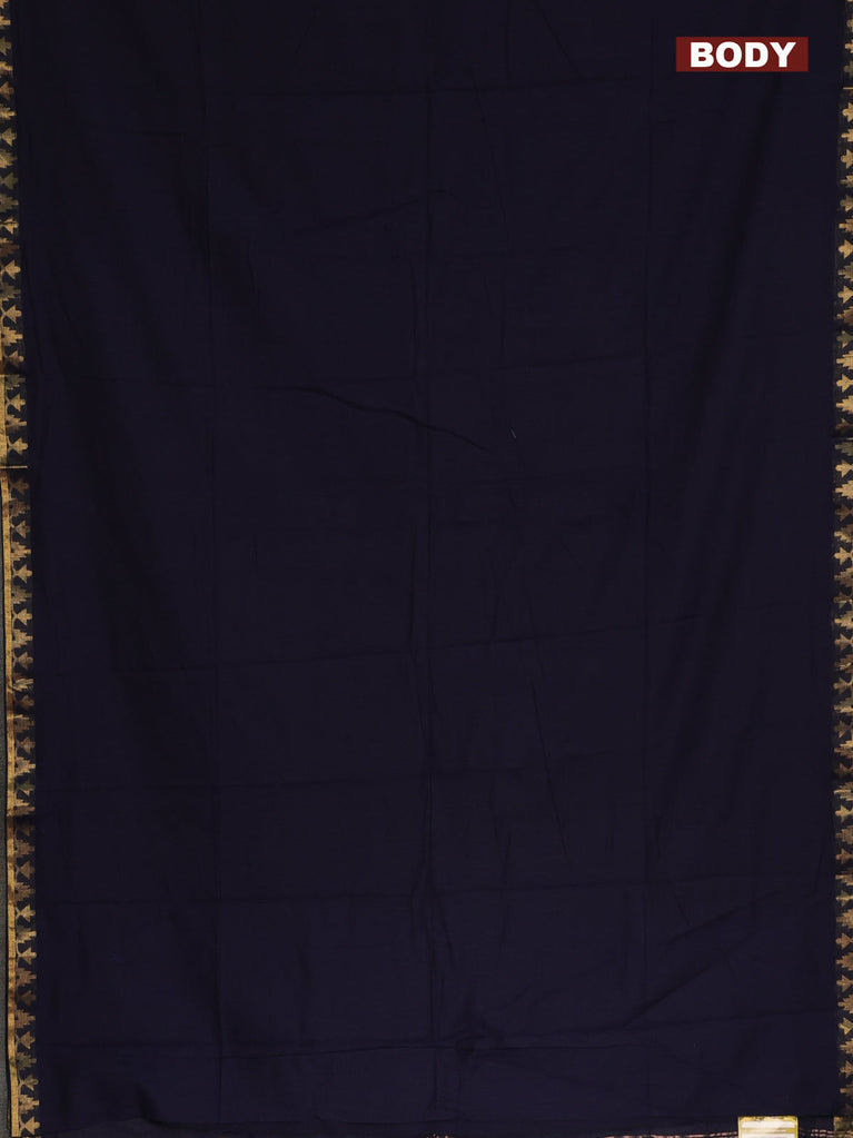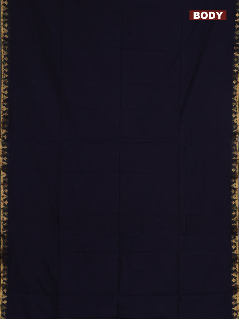 Bengal soft cotton saree navy blue and dark mustard with plain body and zari woven border