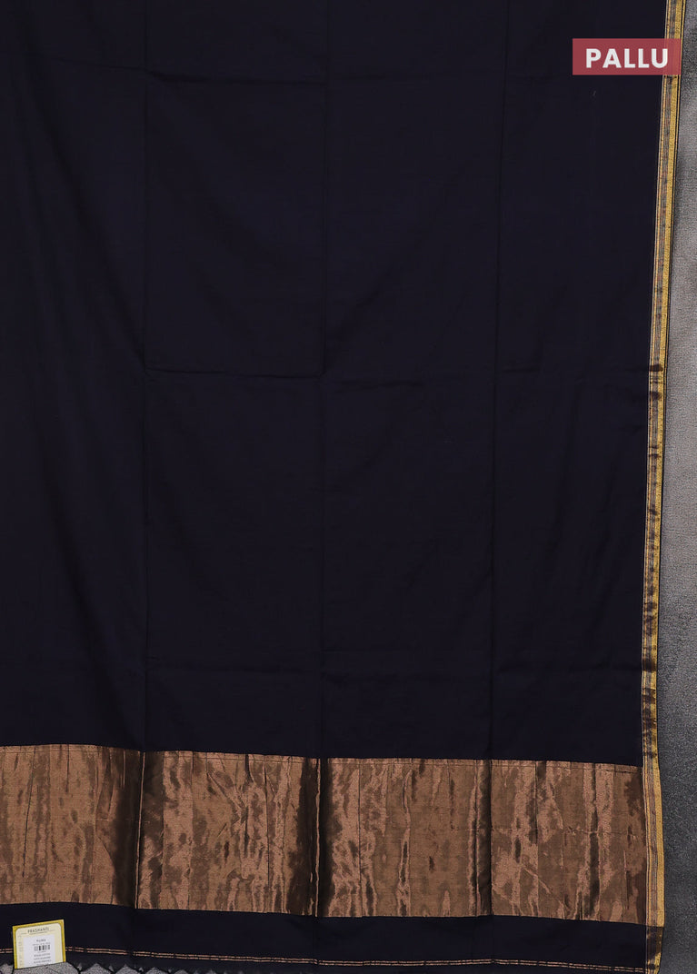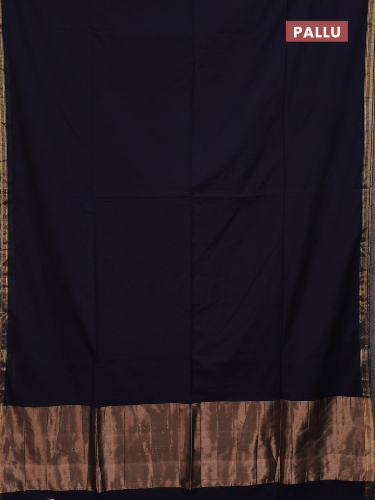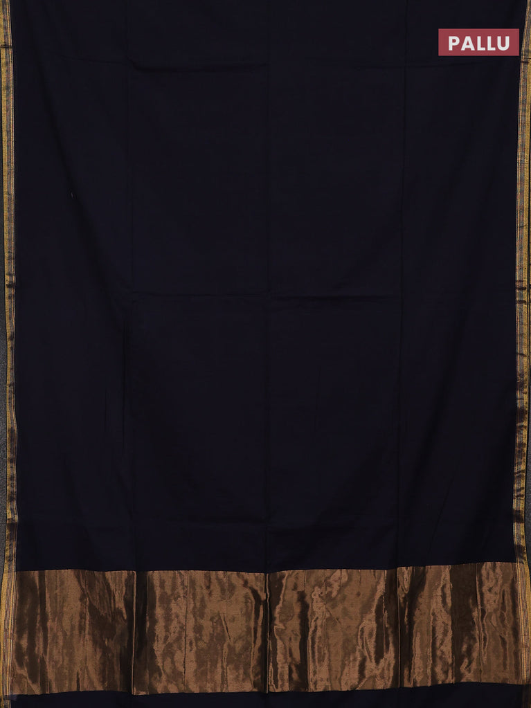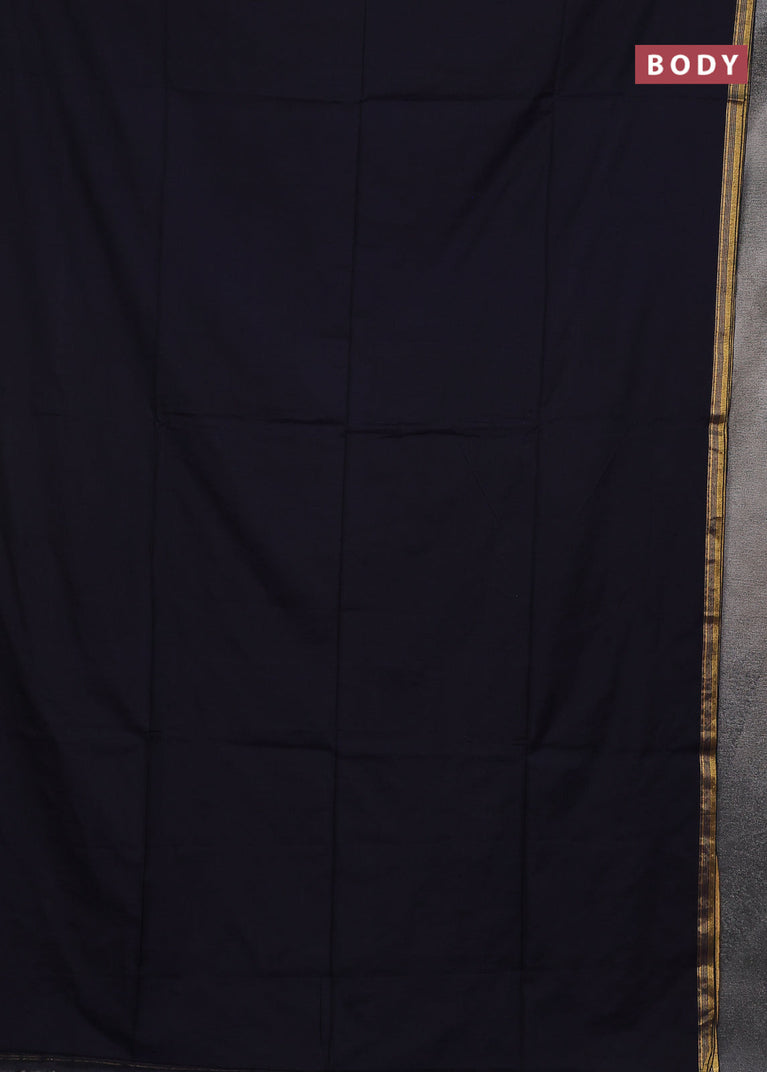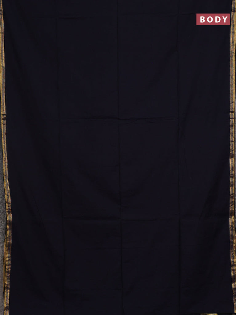 Bengal soft cotton saree navy blue and dark mustard with plain body and zari woven border