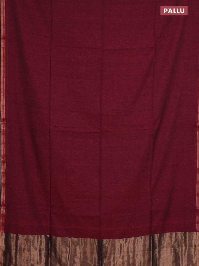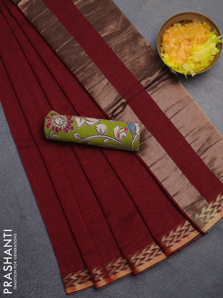Bengal soft cotton saree maroon with plain body and zari woven piping border