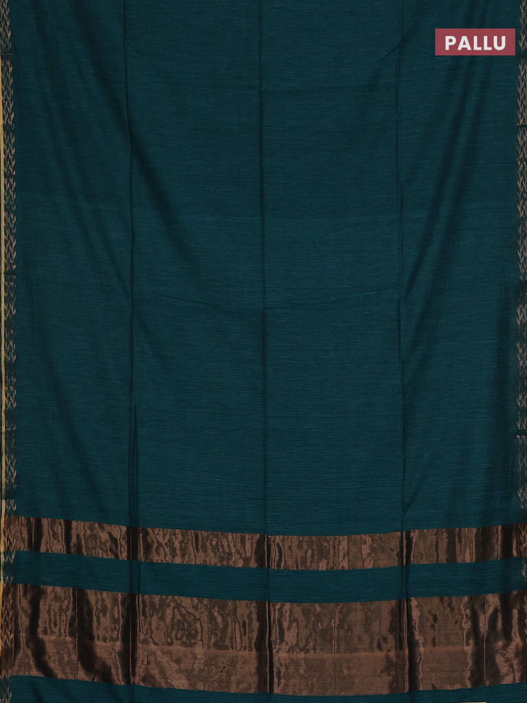 Bengal soft cotton saree teal green shade with plain body and zari woven piping border